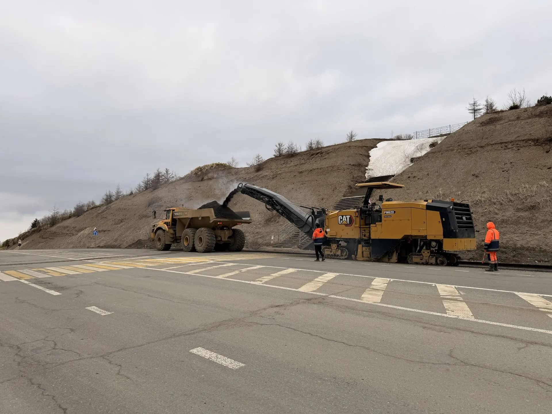 В настоящее время на объекте идёт подготовка: восстанавливается и закрепляется ось трассы, укрепляются откосы насыпи на двух участках. На основном полотне дороги начато фрезерование старого асфальтового покрытия – уже снято 1800 кубометров.