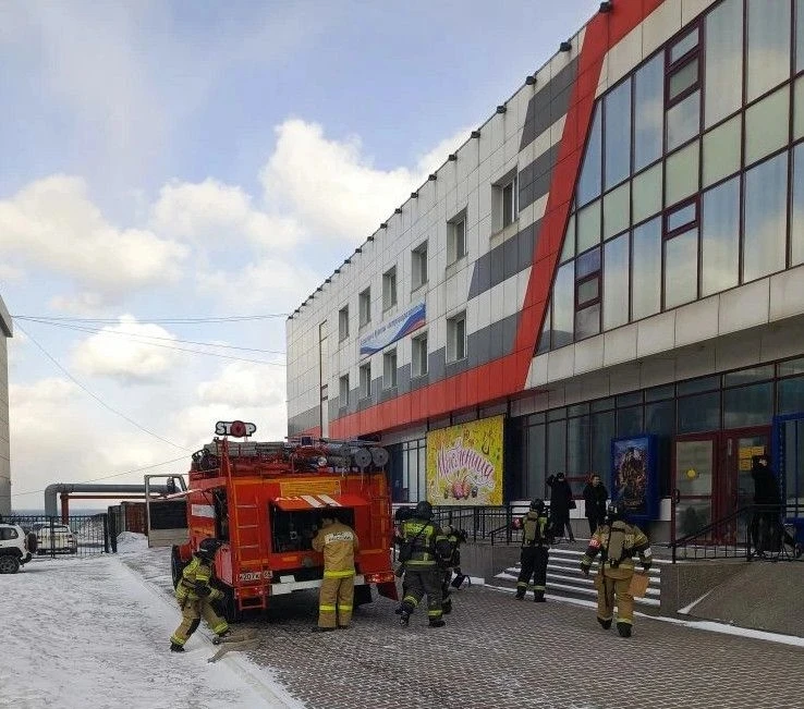 Пожарные учения в Холмске в кинодосуговом центре «Россия»